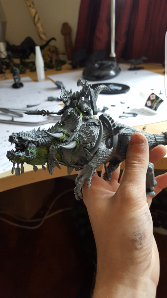 My converted Carnosaur on a (nearly finished) display base along with my bastilodon. Need to finish painting the rest of my army to go on the base. Also pics of Carnosaur in progress. First time attempting to use green stuff and do a conversion so it's more than a bit messy.