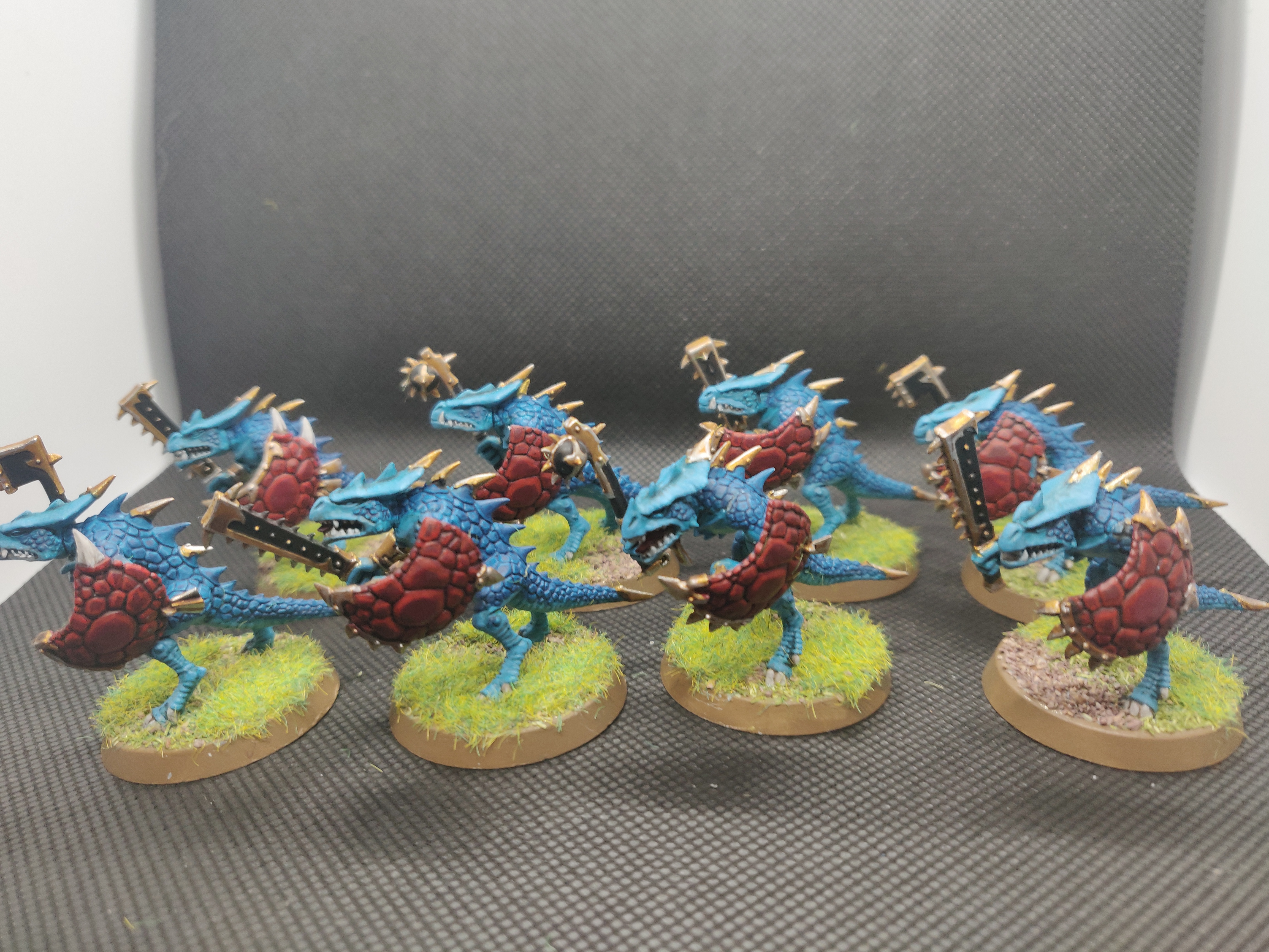 sooooo, only a little late, but finally got around to finishing a bunch of my projects from the past 4 months, winters been exhausting so didn't get as much painting done as i would've liked,completed an Engine of the Gods, 3 Rippers and 8 Saurus Warriors. So heres the stuff I finally finished Engine of the Gods