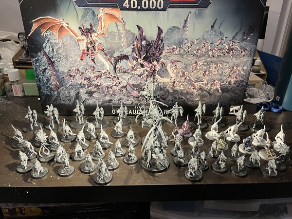 First match in 9 days!!! Wish my luck here’s 57 out of 78 models I’ll be playing in my list!!! and you can guess where the other 21 models will be coming from hehehehe Extra points to the guy/gal that can find the imposter in the gang aka the 3D printed one !!! I’m really starting to like 3D printing as long as I do pre supported and there some right!!! I can’t support for shit lol