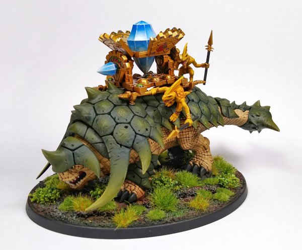 Finished the other bastilidon. Happy with the shell on this one, turned out nice and fiery. I also left the Skinks off - I'll repurpose them as skink handlers.