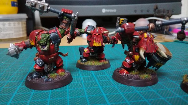 I had some time today to put extreme highlighting on my 5 Orruk Ardboys. Just 3 steps remaining: - putting scratch marks all over the armor - painting the random Yellow battle paint on - basing them properly. (For the quick counters among you: Yes there are 6 Orruks in the picture, but one is the test model I painted up front ) Grrr, Imrahil