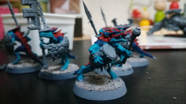 Just a status up-date (since these pictures, yesterday, all warriors have a red back now) WIP: Saurus Warriors Gr, Imrahil