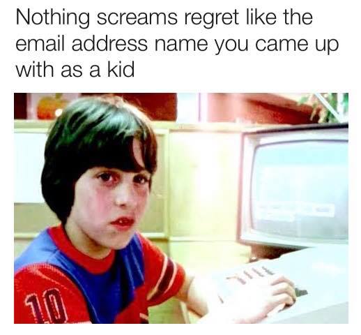 BTDT. My primary email is based off a handle I started using in high school (WW2 Battle Cruiser. I just wanted a name that said "pocket battleship" [10 pts to anyone who catches that allusion]). I still use the email address, but have changed my handle for 95% of what I do online. And now back to your regularly scheduled entertainment.