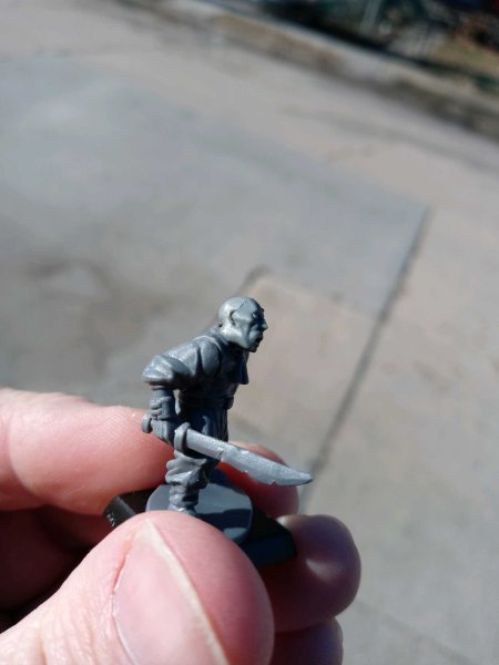 My new converted Oldblood. I still need to add static grass but beyond that he's done. I had assembled the model before thinking of an idea to convert it to represent the Fencing Blades. so I had to cut off the left arm around the elbow, pin a spear head trimmed down to resemble a dagger and a pommel from a Cold One Rider weapon to the left hand after some shaving and cutting. Beyond that, it's just a standard Oldblood on foot from the Carnosaur kit with shoulder plates from the Saurus Warrior set added.