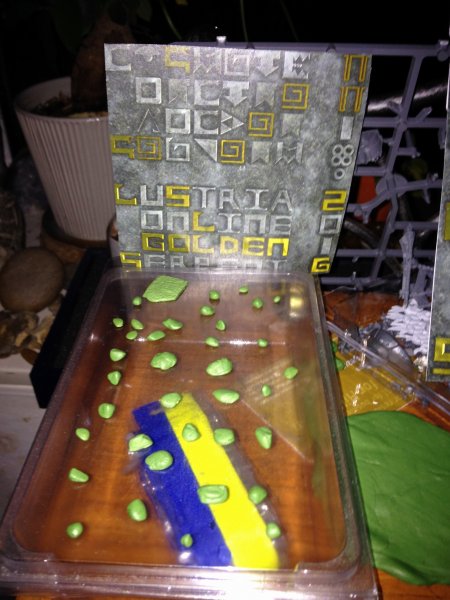 Part 3 if you're still with me... Here is the skink who braved the cage to save his friend (I wanted more skinks on the model but without support structures the space was already dominated) My next conversion will be better from the learning from this one - The top three circles are all magnatised for the crown to float on at different locations they were going to be etched with symbols indication the moon city sun city and star city but I failed at this so gave up. here are the stones I made on the base and another temple bit to add to the scenic effect. I dunno if you can see it here too clearly but I also dry brushed green liquid greenstuff on the base to make it less smooth and more like a grubby dirty effect. Here is another temple wall section from a model unkown but I had to splice of a gryphon claw from it. Here is the greenstuff upside down floating to help support the magnet structure for holding the crown up - it had previously pulled the other magnet off the superglue so I had to strengthen it. Here is the flame spell casted by the skink priest they came from a world of Warcraft model of my brothers I wanted the guy to be casting a cool spell the flame balls are circulating around the crown as he casts them down into battle. Here you can see his cloak blowing in the wind as he is high above floating and I converted his arm to position downwards to be casting at enemies. There are lots of other little bits I did but I won't bore you with them I can't find the pictures to hand at the moment. - I made some plauques which he is standing on they are imprinted by the tehehuains staff to make them have Lizardmen glyphs on them. I made some scrolls for his spell casting and for realistic gameplay - urhm what else did I do? not a lot else worth mentioning Hope you enjoyed next year victory will be mine!