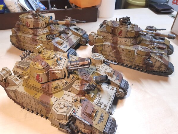 Wow @Killer Angel you have been hard at work on those Tallarns! The tank corps you have created looks great, I really like how clean and crisp the painting is on these tanks, plus all those rivets. The writing and symbols on the tanks look great too! And I really like the work you did on your tank commander, the green stuff work is spot on and the finished mini is fantastic!