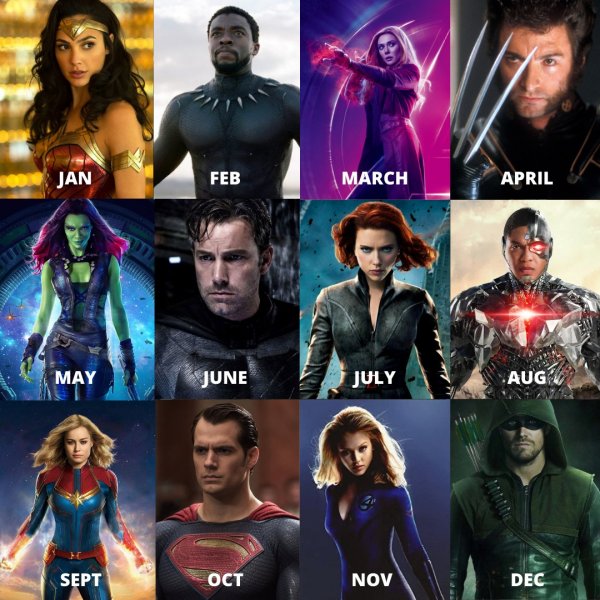 Do the actors and actresses have real birthdays on those months or something? It seems like a weird grouping otherwise. Arrow is a TV show while all the others are movie characters. Sue Storm's movie was a commercial and critical flop that is more or less forgotten. Captain Marvel alienates the fan base (though the movie was commercially successful on paper). As controversial as Brie Larson is, I'd rather be in her shoes than whoever played Sue Storm in the last F4 movie. In entertainment it is actually better to be hated than to be ignored. This applies to many things, but "The opposite of love is not hate. The opposite of love is indifference."